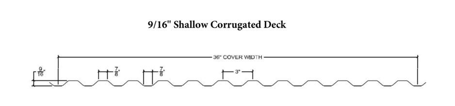 - Depth: The deck's depth is 9/16", measured from the top of the rib to the bottom of the valley.