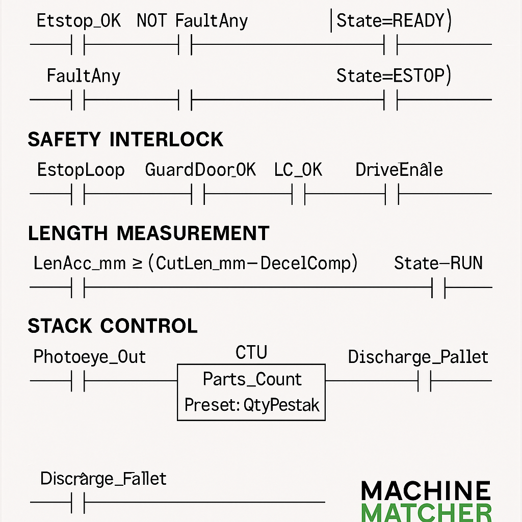 At Machine Matcher, we build and supply roll forming machines worldwide, each equipped with industrial-grade PLC systems (Siemens, Allen-Bradley, Delta, or Mitsubishi). This guide explains the structure of roll forming automation, with real ladder logic examples and best practices for engineers and plant managers.