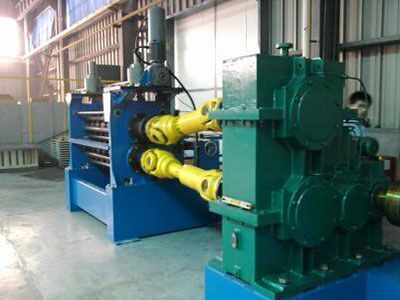 This machine is used to transport the corrugated sheet to the welding machine, and it is equipped with sheet lateral moving device. Left and right flange transmission units are symmetrical parts, the main function of these units is to transport the flange to the welding machine. The frame adopts lifting device, and reduction motor drive.