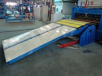 The hydraulic cylinder controls the lifting of pressing roller. The AC2.2kw motor will drive the roller and feed the sheet into the leveler. The straightener will straighten the head of the sheet; it is controlled by hydraulic cylinder.