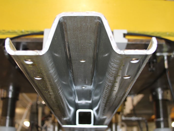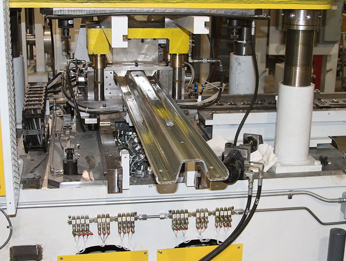 - Hydraulic punching system for bolt holes and notches.