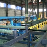 JH H-beam welding line consists of assembling machine, front welding machine, turn-over device, back welding machine and transmission conveyors. It is used to assemble the H-beam with 180°turning over and transmitting, etc. The annual welding capacity is 8000 tons.