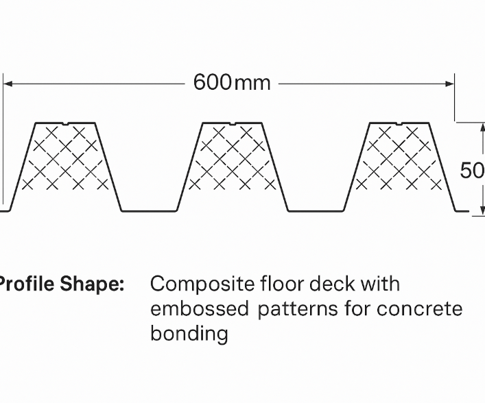| Profile Shape: | Composite floor deck with embossed patterns for concrete bonding |