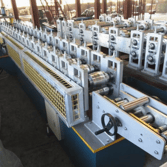 A: It’s an automated production line that shapes metal coils into interlocking shutter door slats, ready for assembly into rolling doors.