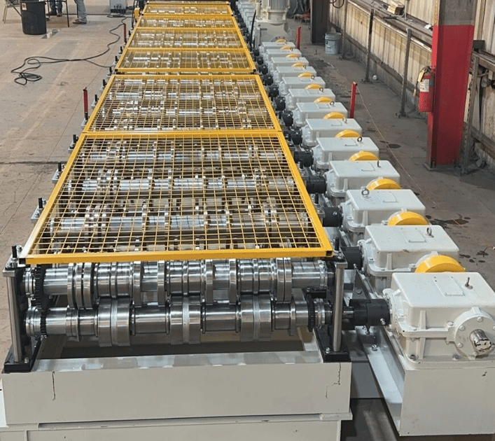 The machine can produce 1.5-inch B deck, 3-inch N deck, composite metal deck, and steel form deck. Custom profiles can also be manufactured based on your requirements.