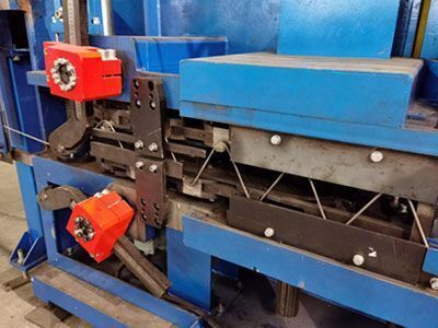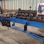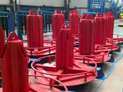 It consists of steel bar feeder (for 1 top chord, 2 bottom chords and 2 web members), steel bar measuring device; every decoiler consists of wire releasing shaft, central spindle, turntable and brake. Max. coil weight: 3T Brake pneumatic cylinder diameter: about φ100*50mm; quantity: 8pcs.