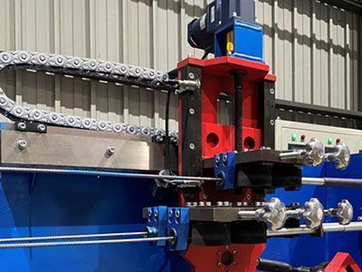 It consists of 2 pairs of rotated chain wheel, bending arm, drive motor and upper and lower specifications adjusting device.