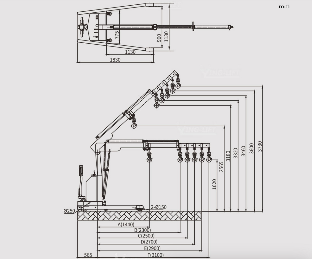 Wide range of lifting angles, adjustable telescopic long arm;